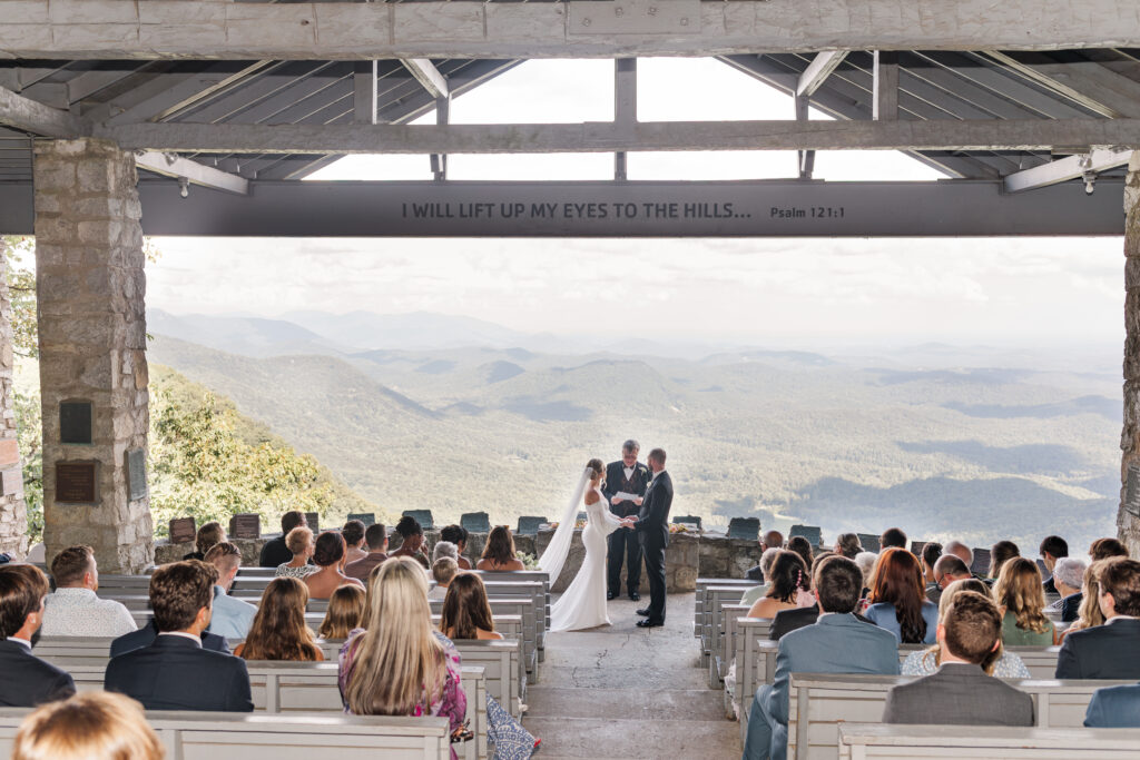 There are few places in the Carolinas more breathtaking for a wedding ceremony than Pretty Place Chapel, officially known as Fred W. Symmes Chapel at YMCA Camp Greenville. Tucked high in the Blue Ridge Mountains on the North Carolina–South Carolina border, it offers couples panoramic mountain views that stretch for miles. A truly unforgettable backdrop for saying “I do.”